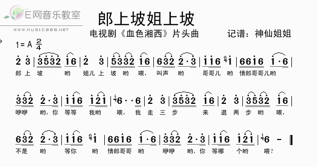 郎上坡哟 姐上坡哟喂 叫声哟哥哥哟情郎哥哥哟 咿哟你等等我哟喂 我走三步来退两步哟喂 不是哟 等你哟 情郎哥哥哟 咿哟 等哪个哟喂 郎上坡 姐上坡 演唱 影视原声 专辑 血色湘西主题曲