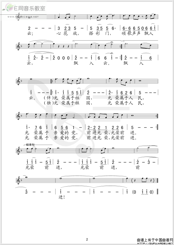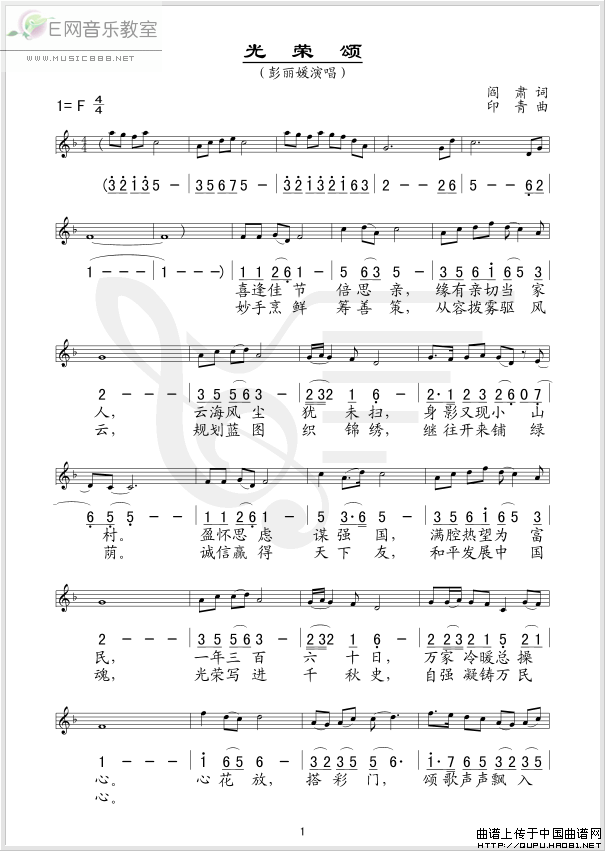 >> 光荣颂-彭丽媛(简谱+线谱)