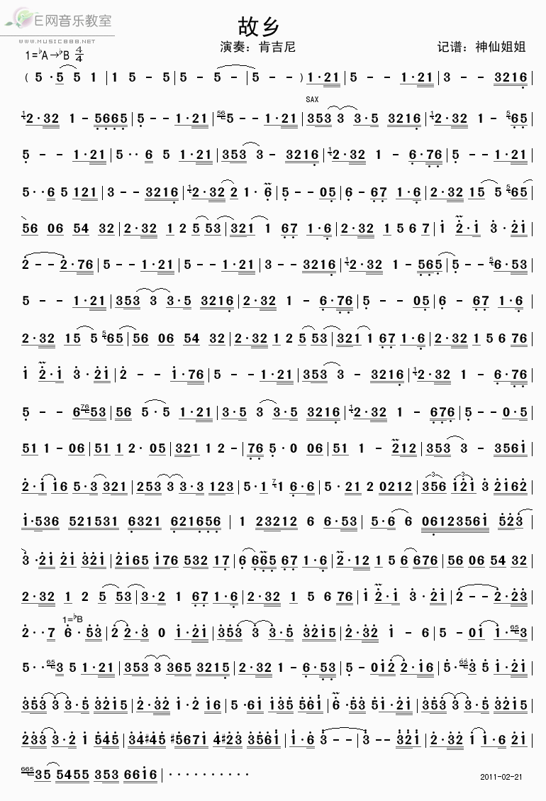 艾尔叔叔-肯尼基(萨克斯曲谱_简谱)