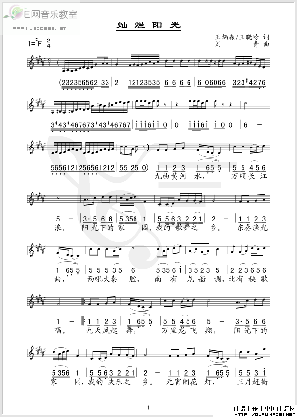 灿烂阳光 歌词: