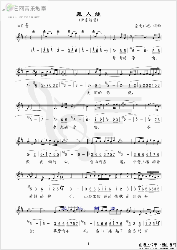 >> 藏人缘-亚东(简谱+线谱)