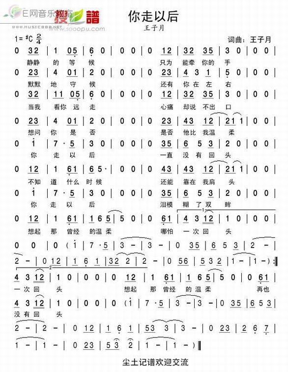 你走以后-王子月 歌词:
