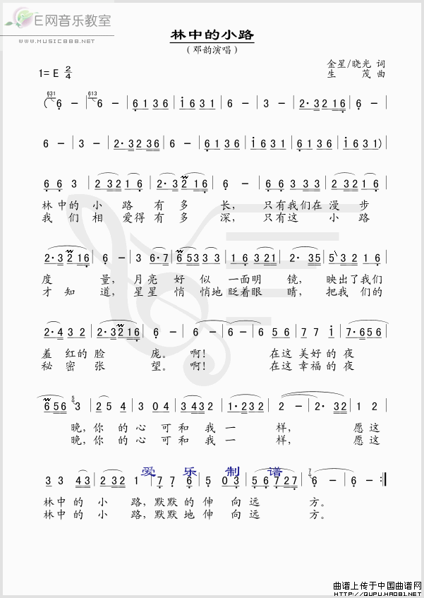 >> 林中的小路-邓韵(简谱)