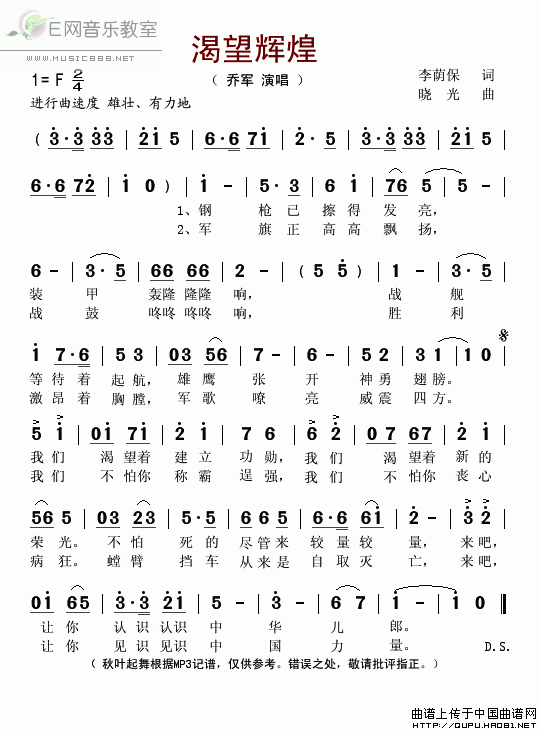 渴望辉煌-乔军 歌词: