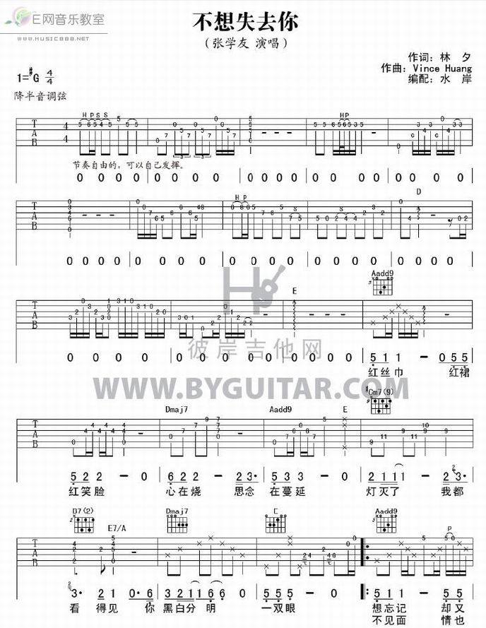 歌名:不想失去你