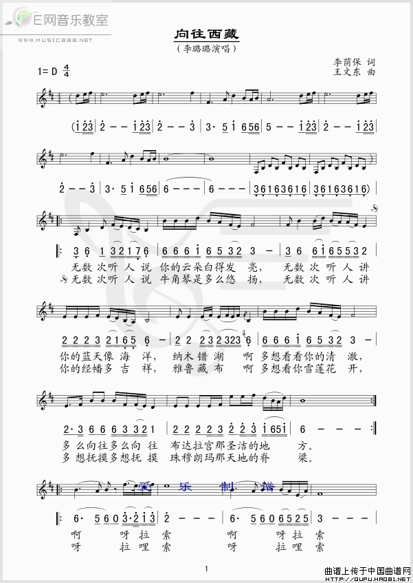 向往西藏-李璐璐 歌词: