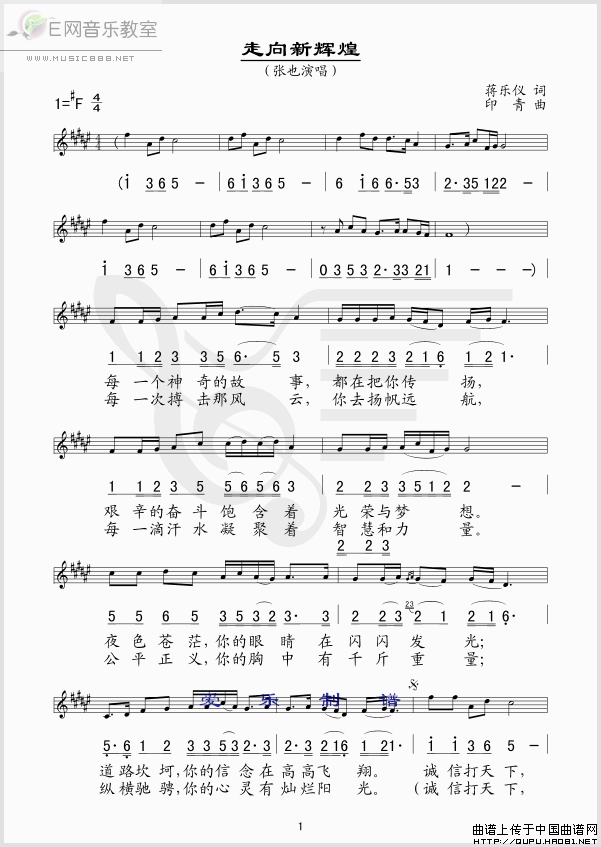 不忘延安-张也(《保卫延安》片尾曲简谱+线谱)
