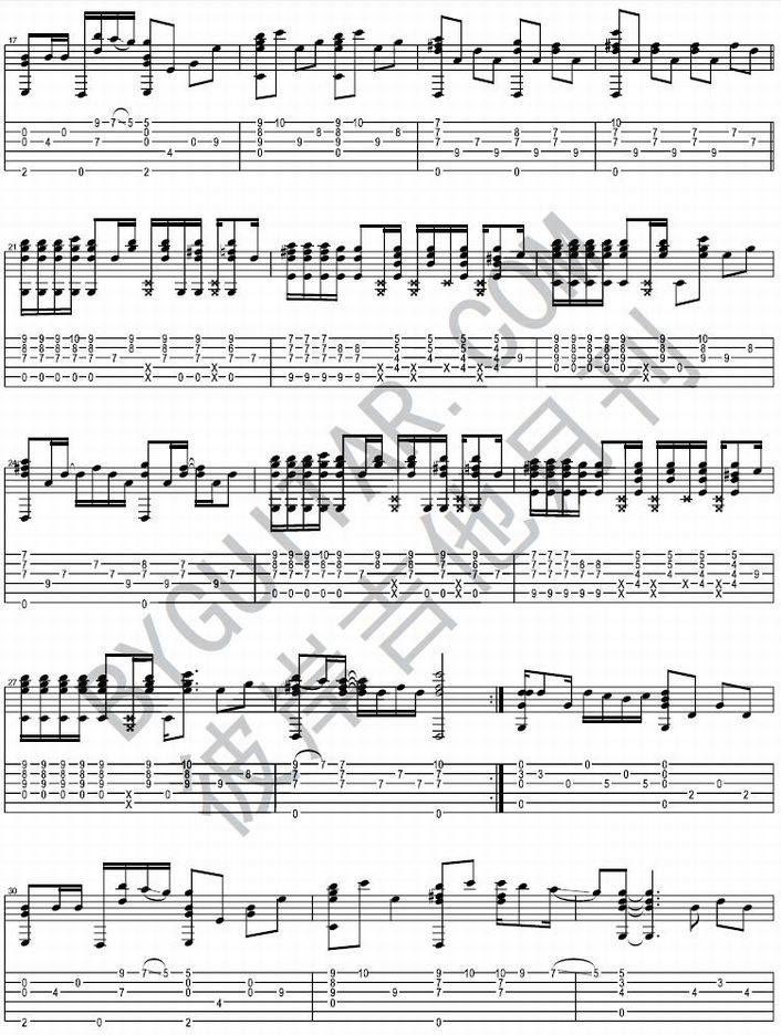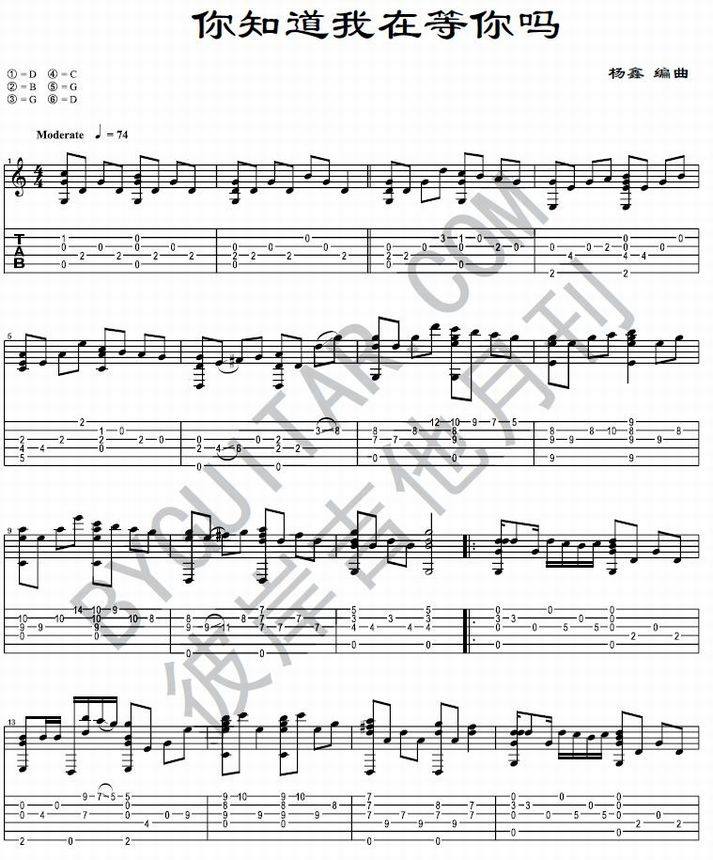 >> 你知道我在等你吗-指弹独奏(吉他曲谱)