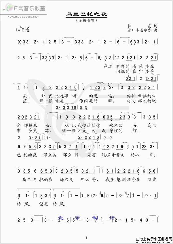 祖国草原祝福你-朱永飞 龙梅(简谱)