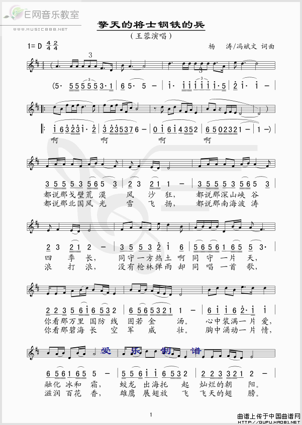 擎天的将士钢铁的兵-王蓉(简谱+线谱)