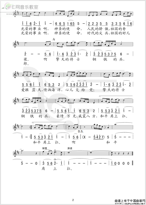 >> 擎天的将士钢铁的兵-王蓉(简谱+线谱)