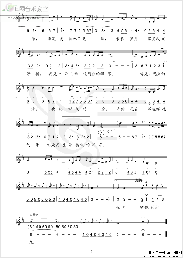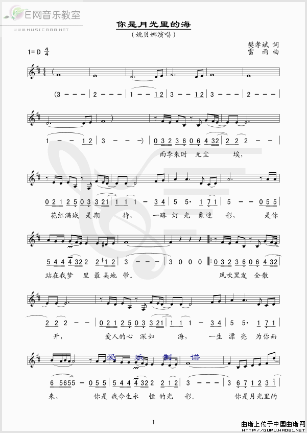 >> 你是月光里的海-姚贝娜(简谱+线谱)