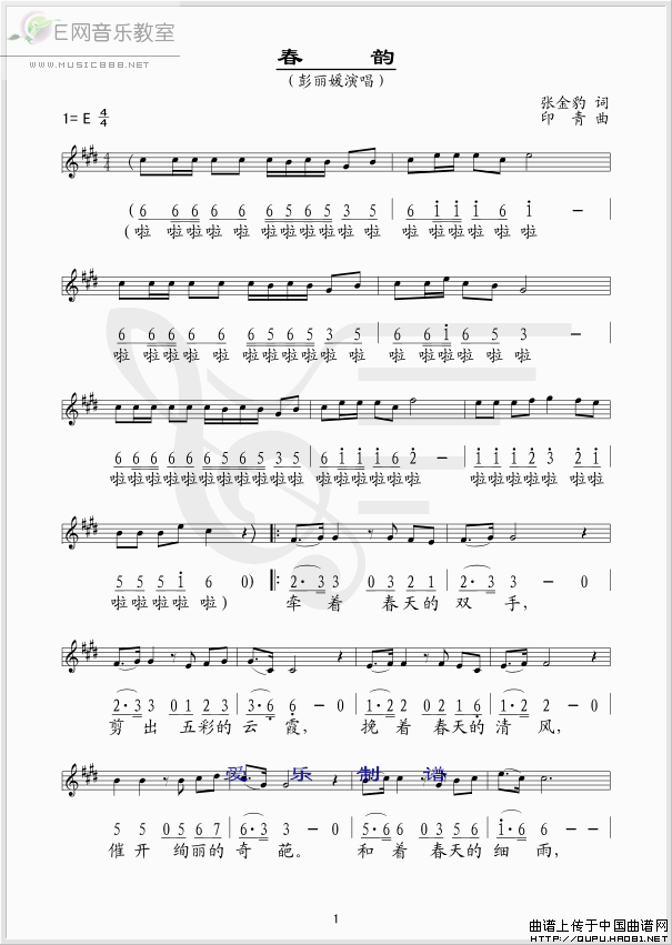 阳光路上-彭丽媛(钢琴谱_五线谱)