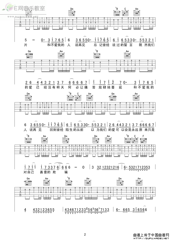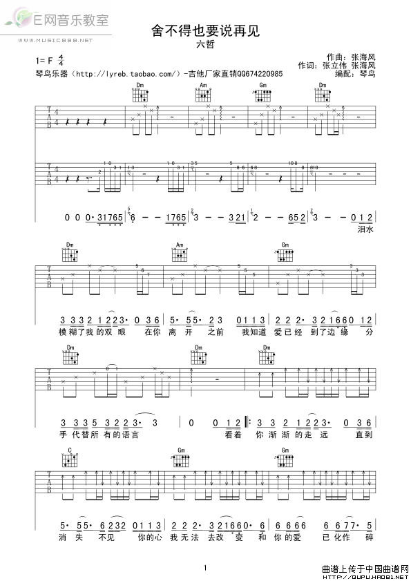 >> 舍不得也要说再见-六哲(吉他谱)