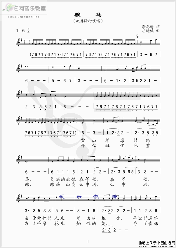 >> 骏马-次真降措(简谱+线谱)