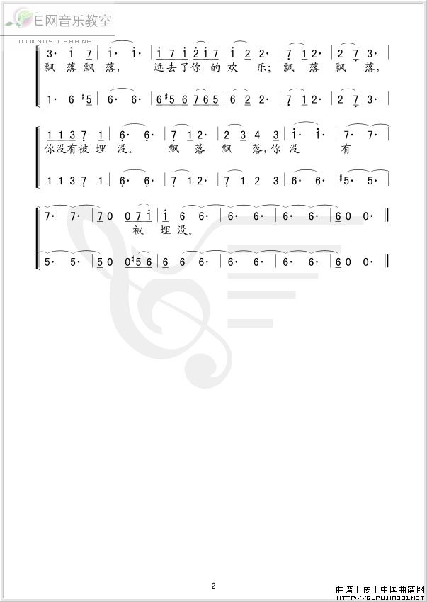 落叶,留给我深沉的思念-原创歌曲(简谱)