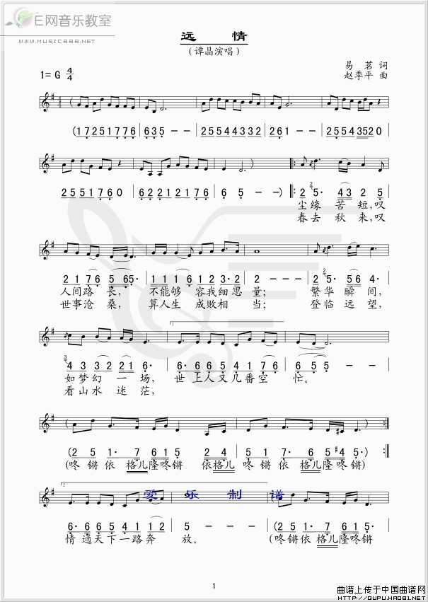 远情-《乔家大院》主题歌(领唱与合唱简谱)