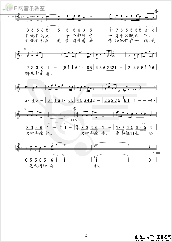 >> 你和你的兵-军旅歌曲(简谱+线谱)