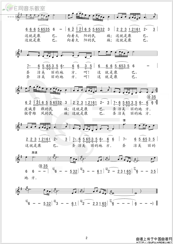 >> 圣洁的康巴-旺吉达娃(简谱+线谱)