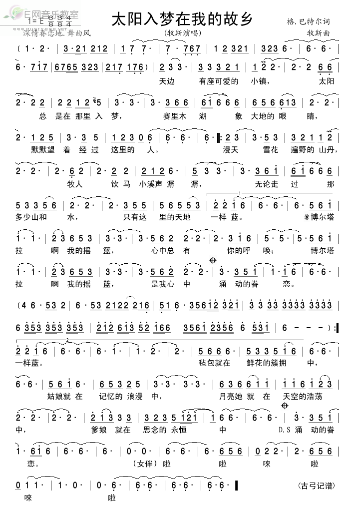 >> 太阳入梦在我的故乡-牧斯(简谱)