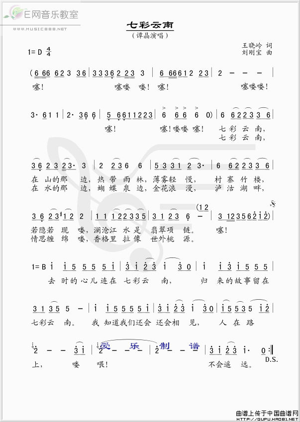 >> 七彩云南-谭晶(简谱)