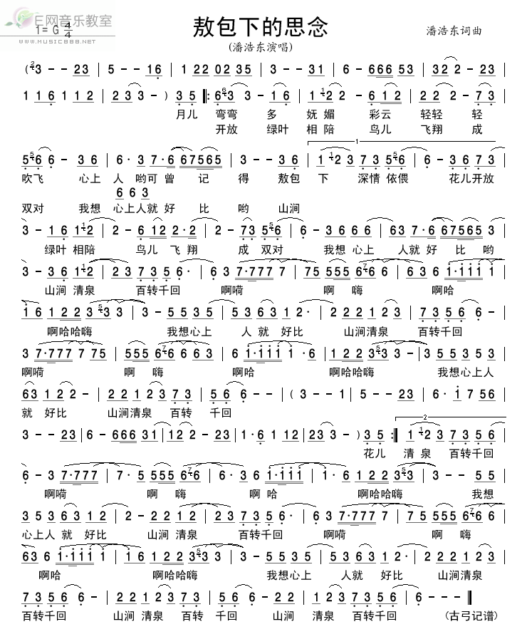 敖包下的思念-潘浩东 歌词: