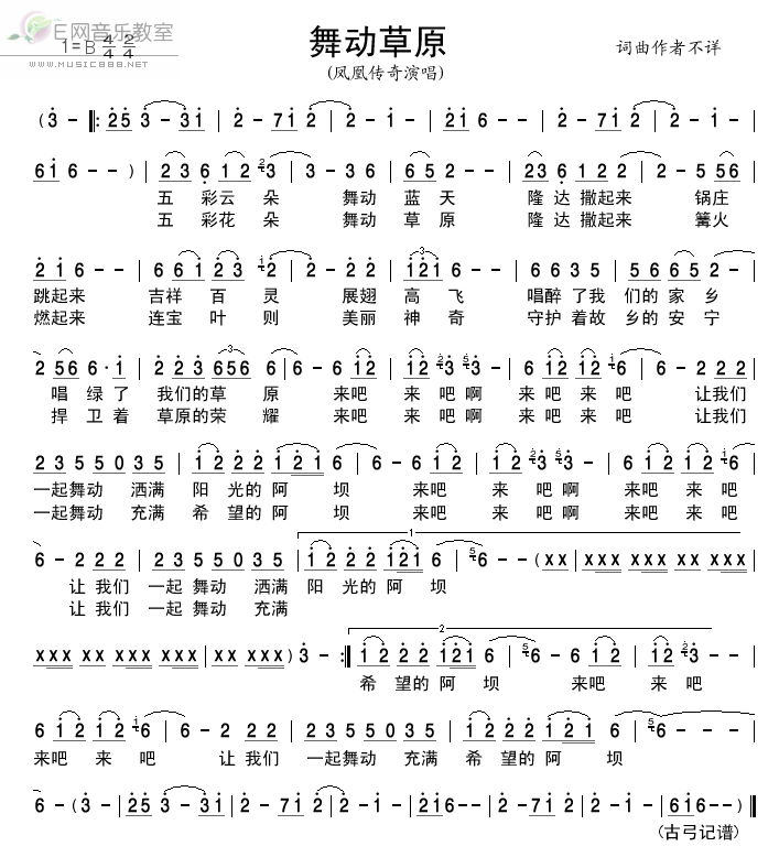>> 舞动草原-凤凰传奇(简谱)