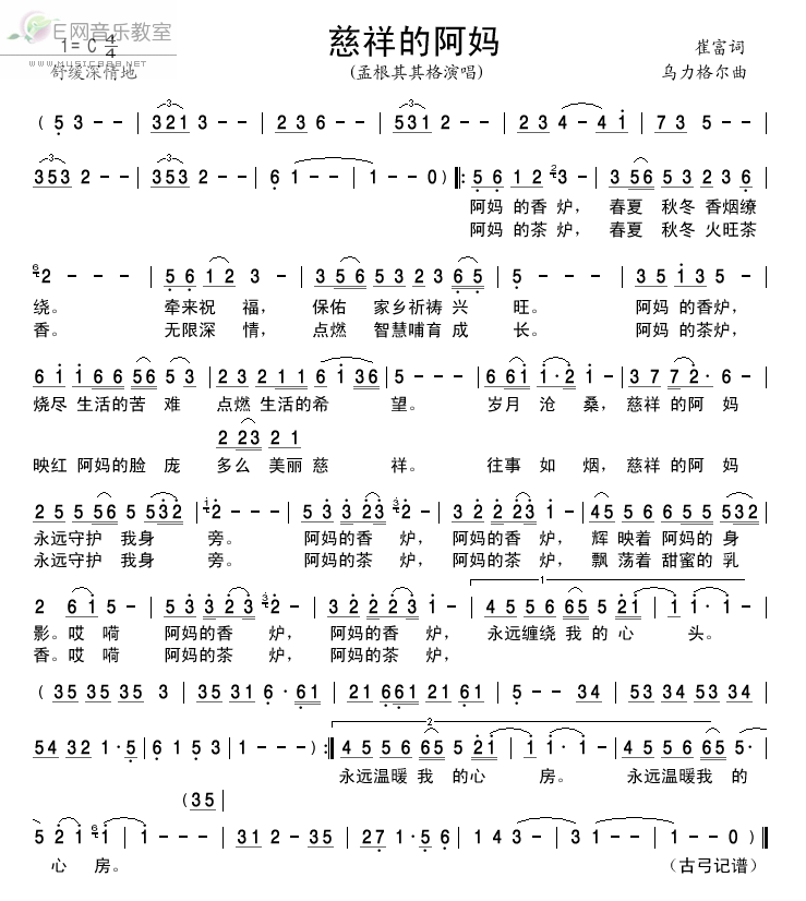 >> 慈祥的阿妈-孟根其其格(简谱)