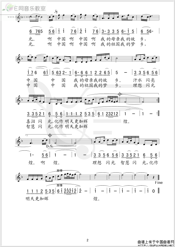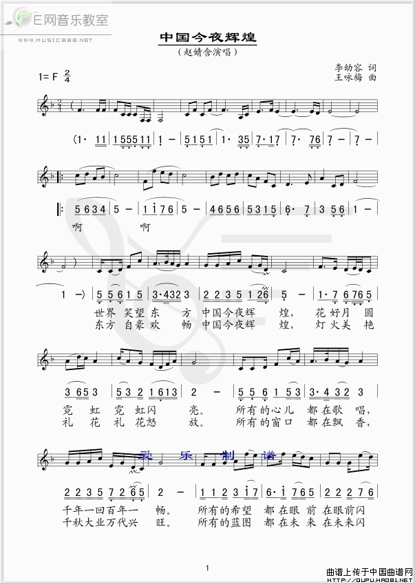 >> 中国今夜辉煌-赵婧含(简谱+线谱)