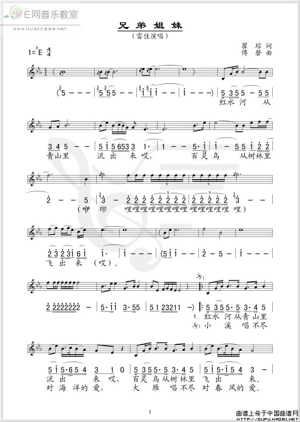 >> 兄弟姐妹-雷佳(简谱+线谱)