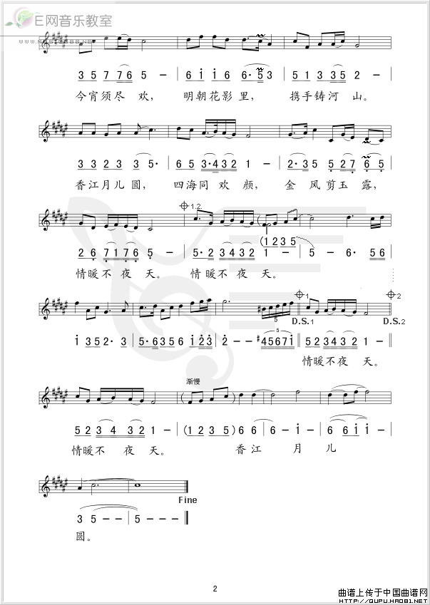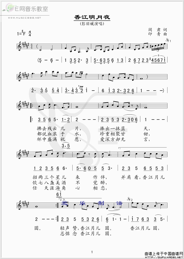 >> 香江明月夜-彭丽媛(简谱+线谱)