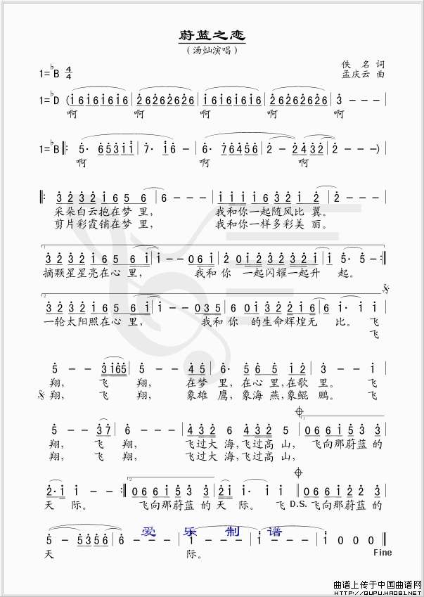 蔚蓝之恋-汤灿 歌词:
