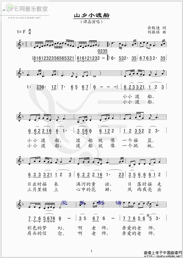 >> 山乡小渡船-谭晶(简谱+线谱)
