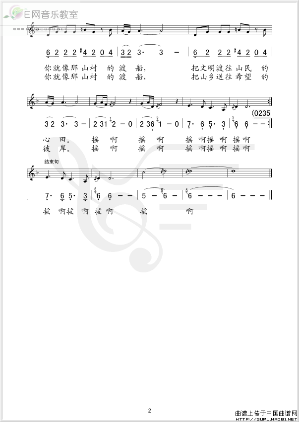 山乡小渡船-谭晶(简谱+线谱)