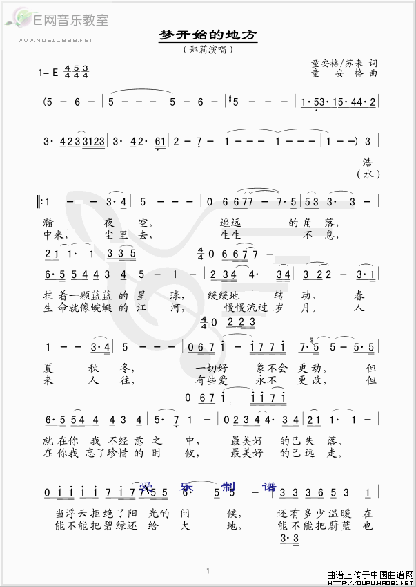 >> 梦开始的地方-郑莉(简谱)