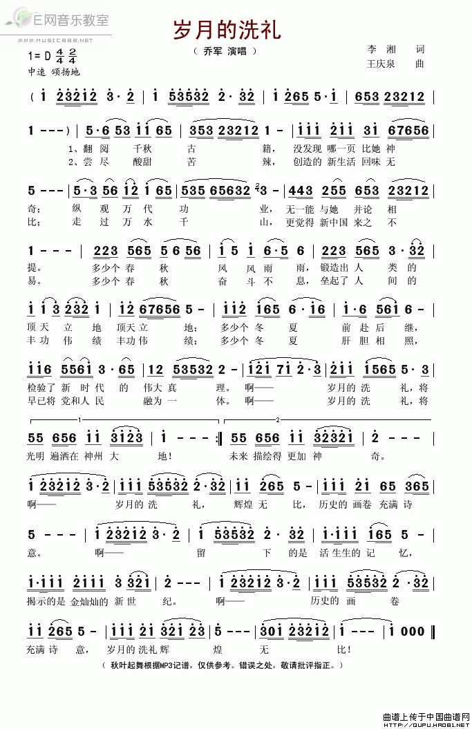 岁月的洗礼-乔军 歌词: