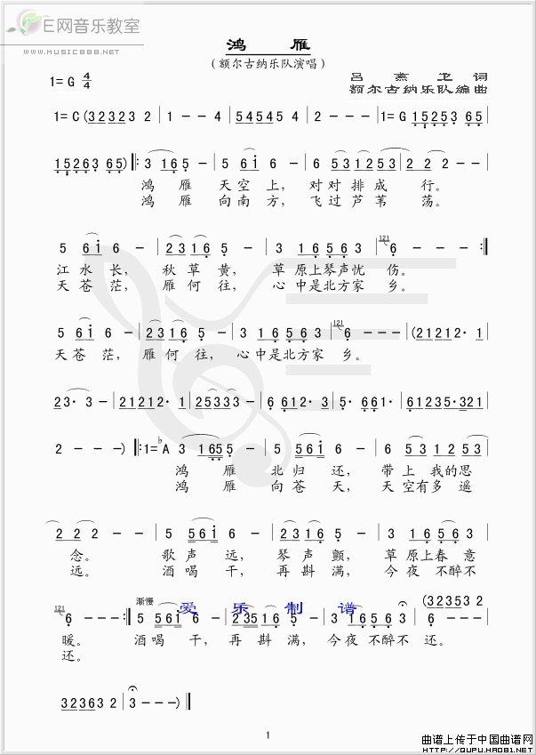 青海梦-额尔古纳乐队 雪莲组合(简谱+线谱)
