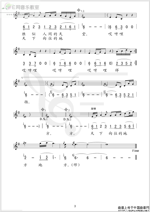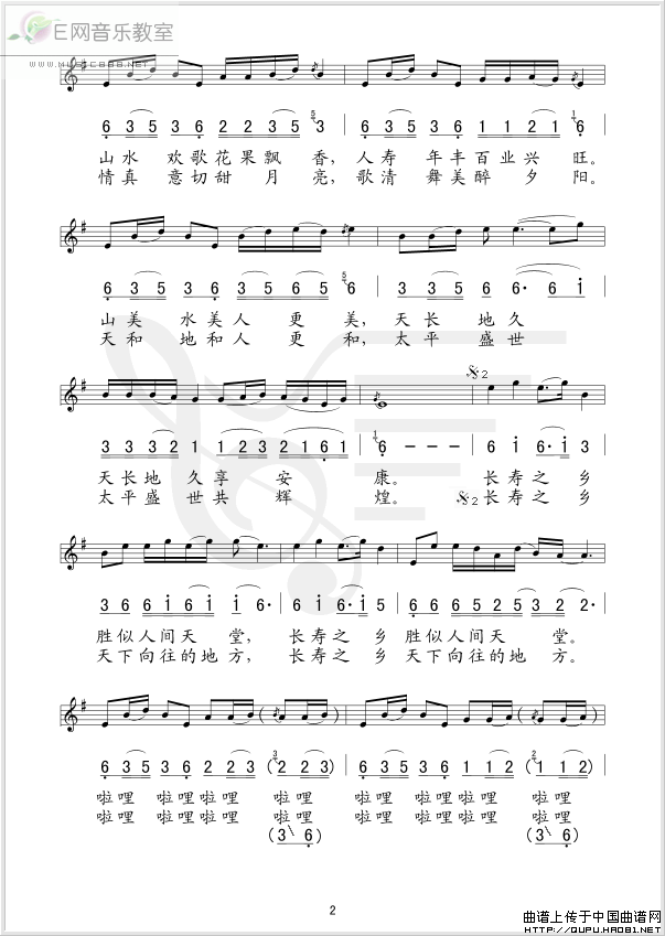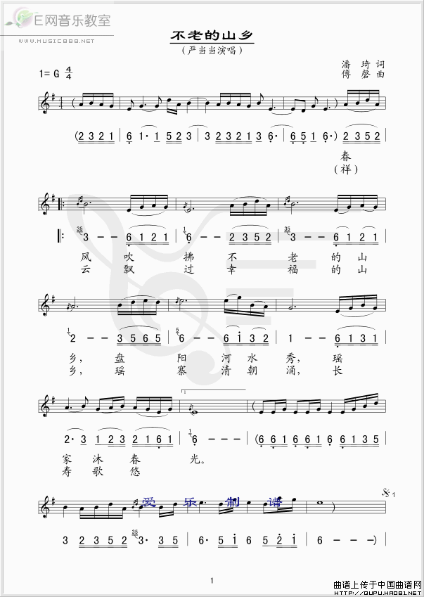 >> 不老的山乡-严当当(简谱+线谱)
