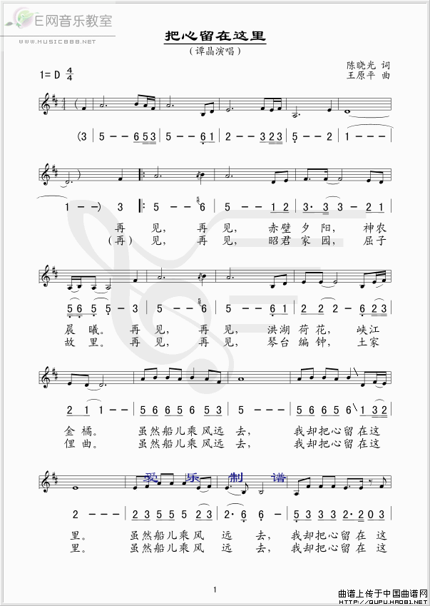 >> 把心留在这里-谭晶(简谱+线谱)