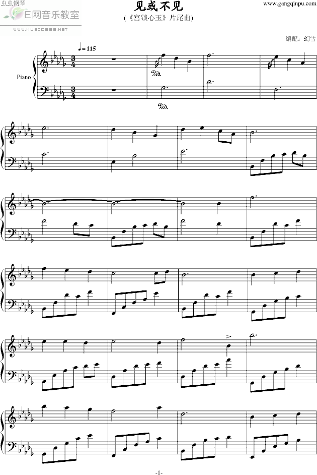 >> 见或不见-何晟铭(《宫锁心玉》片尾曲钢琴谱)
