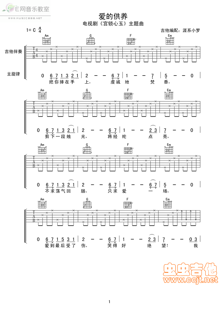 >> 爱的供养-杨幂(《宫锁心玉》主题曲吉他谱)