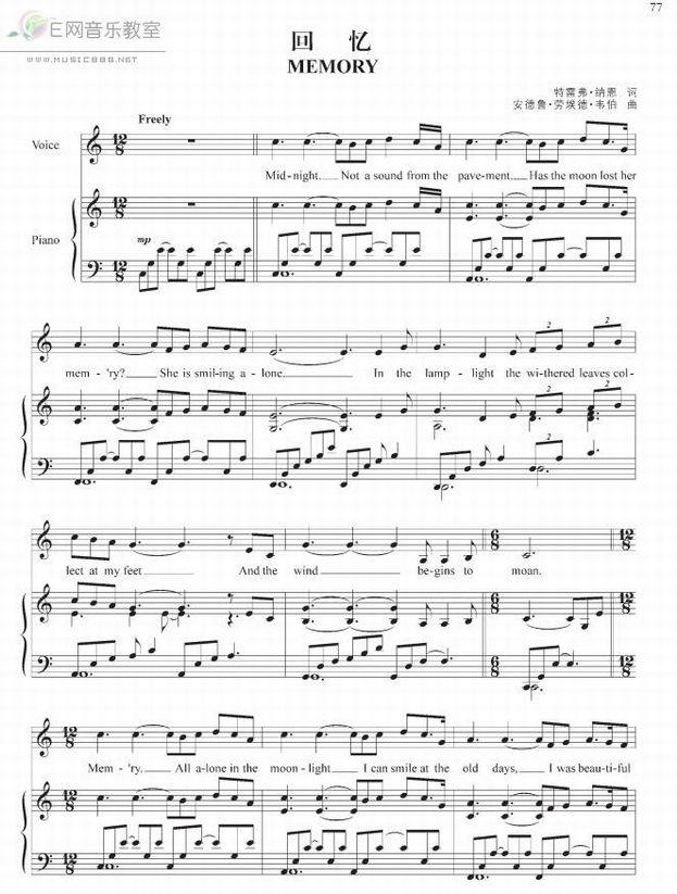 >> Memor -回忆(音乐剧《猫》选曲钢琴谱)