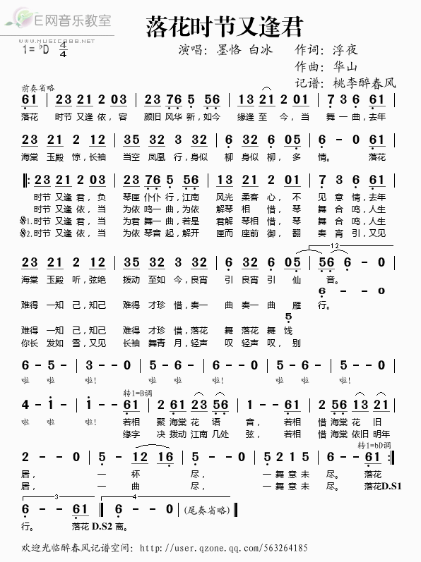 >> 落花时节又逢君——墨恪 白冰(简谱)