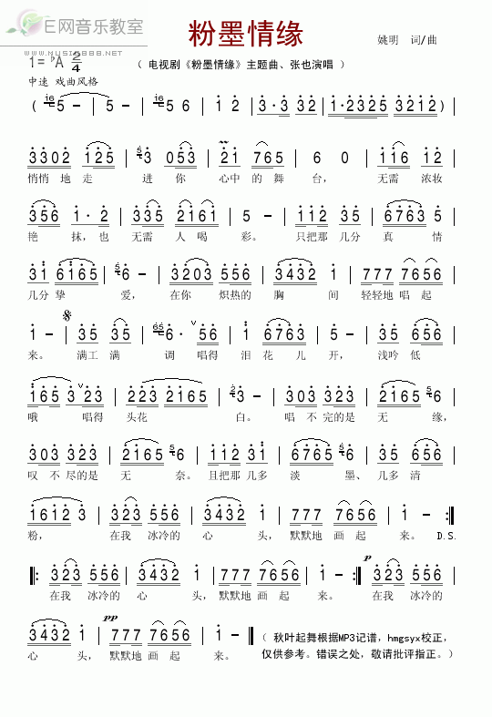 粉墨情缘-张也 歌词:
