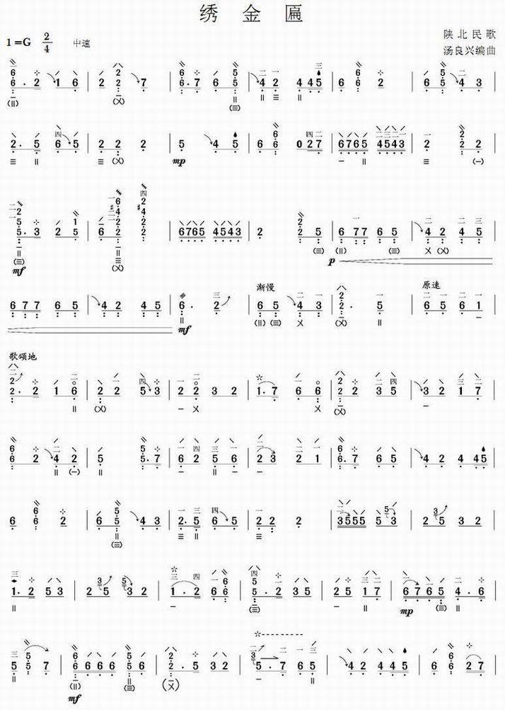 >> 绣金匾-陕北民歌(琵琶曲谱)