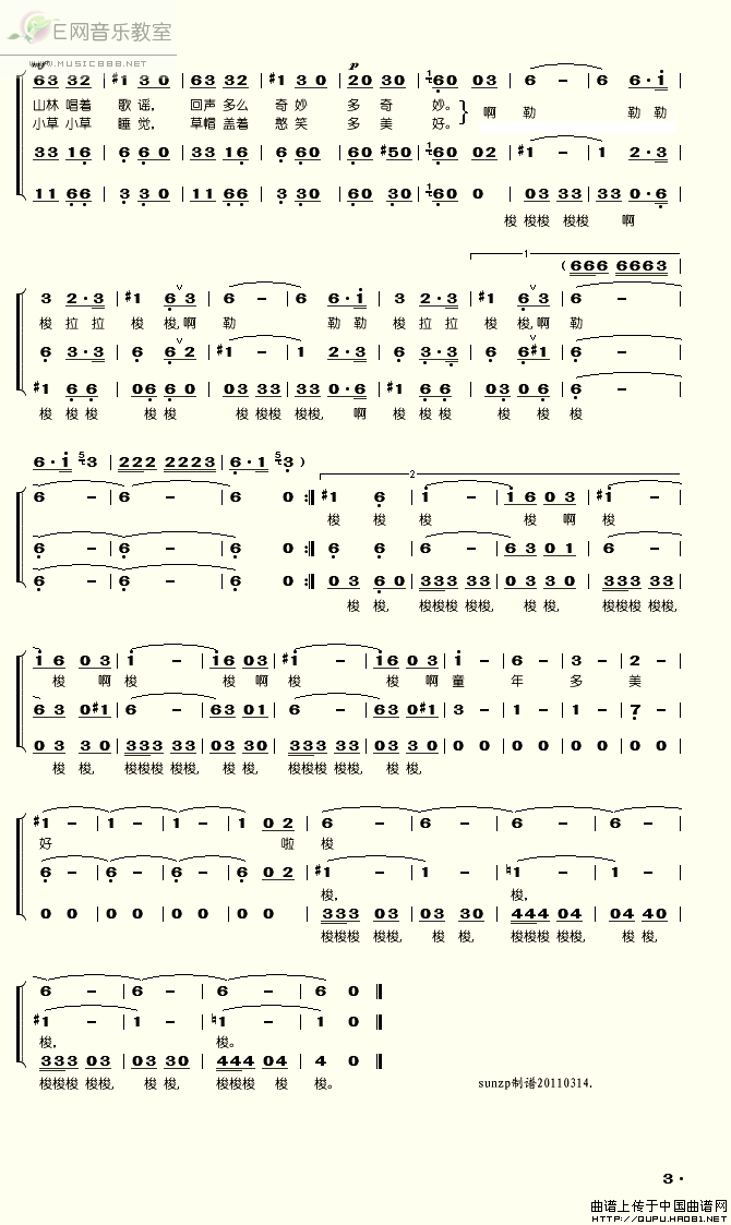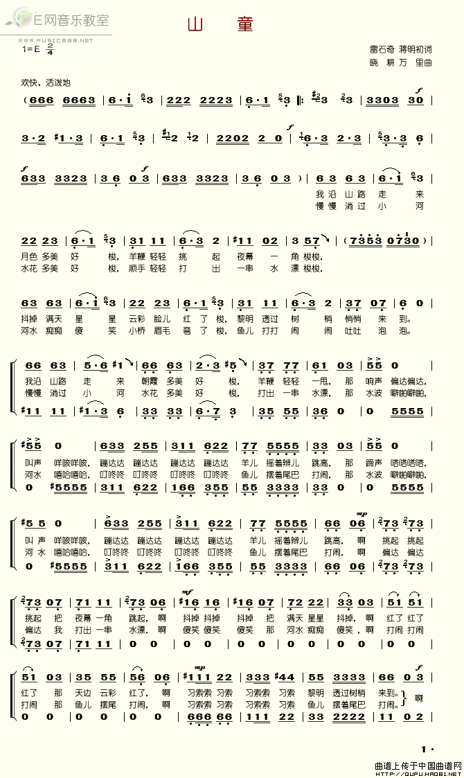 >> 山童-合唱(简谱)