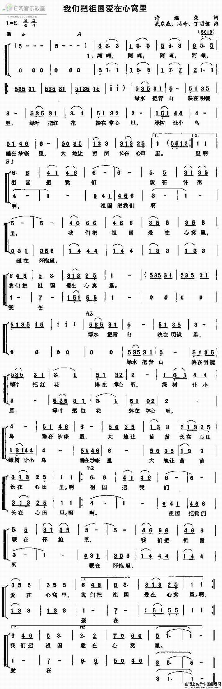 >> 我们把祖国爱在心窝里-少儿歌曲(合唱简谱)