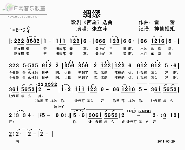 >> 绸缪-张立萍(歌剧《西施》选曲简谱)