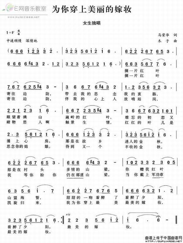 >> 为你穿上美丽的嫁妆-女声独唱(简谱)
