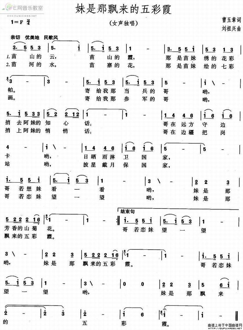 >> 妹是那飘来的五彩霞-女声独唱(简谱)